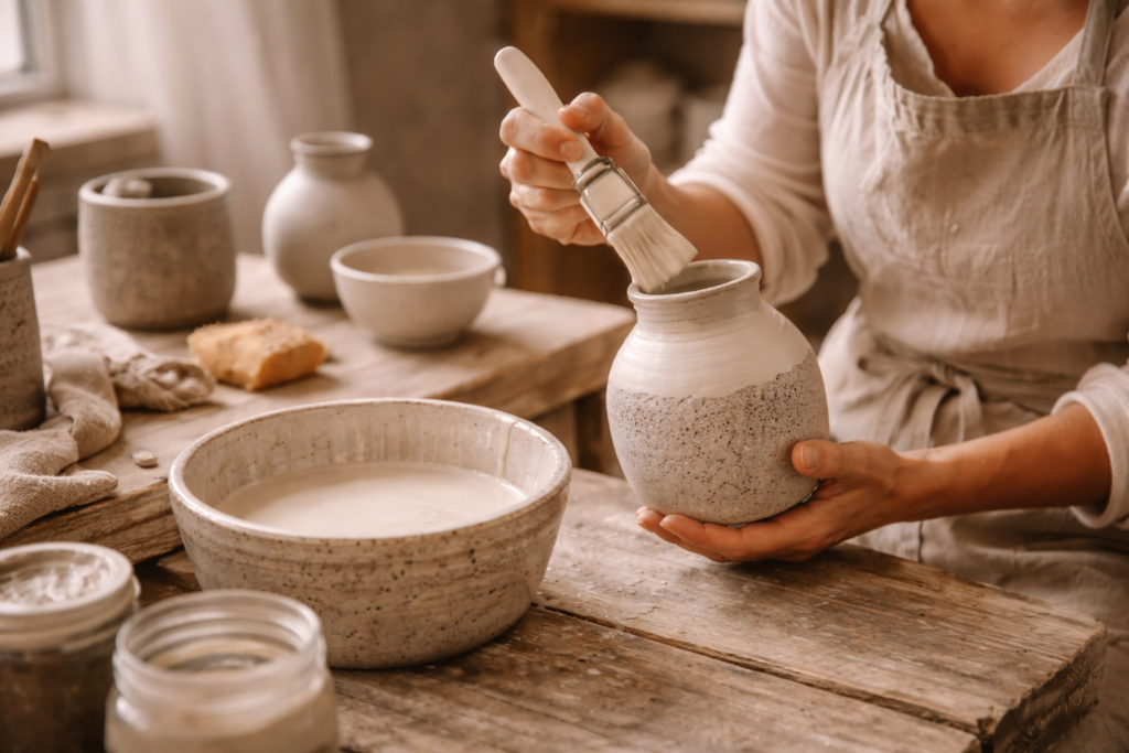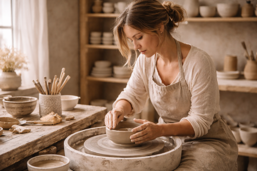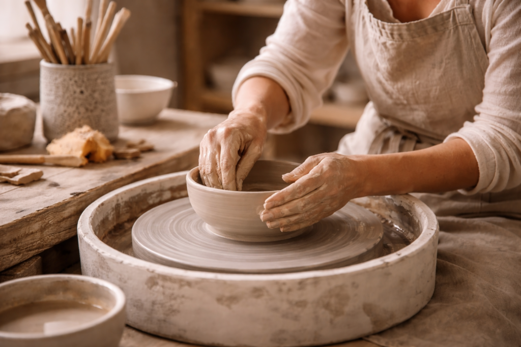Le travail de la terre demande patience et précision. Chaque étape — modelage, séchage, cuisson — participe à la naissance d’un objet durable.